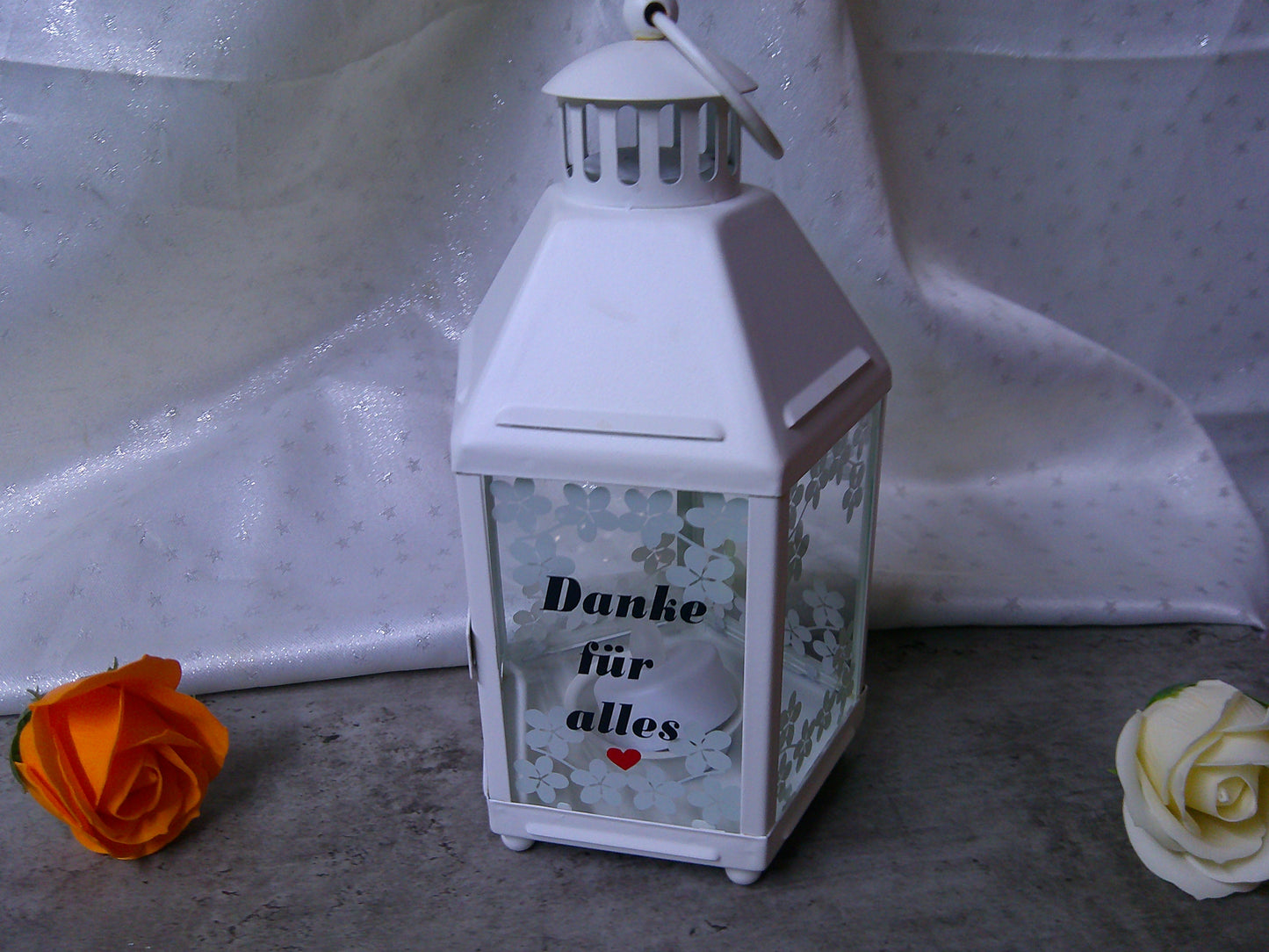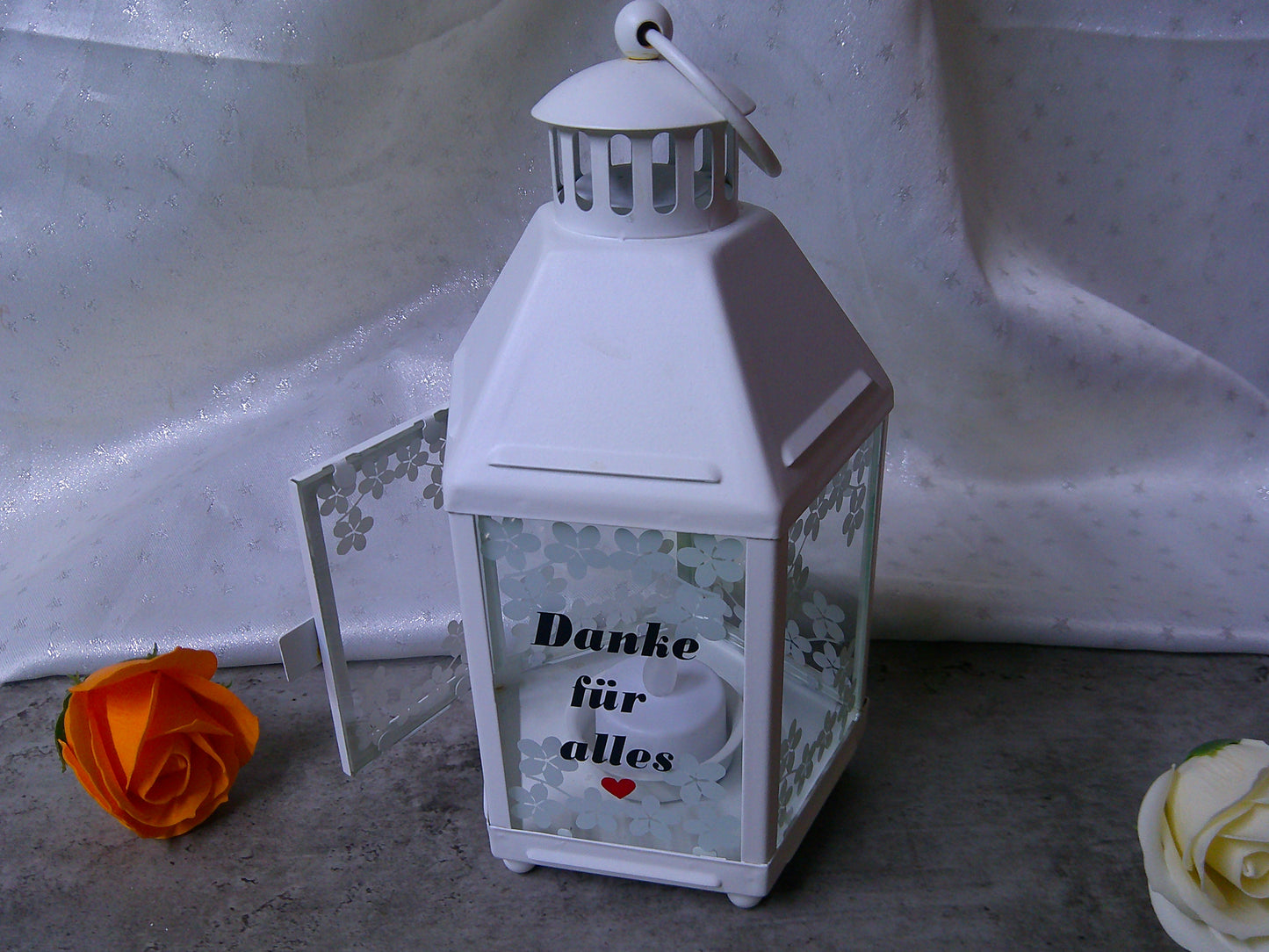 Diese Deko Laterne mit Danke Spruch ist das perfekte Zuhause Geschenk oder für eine Überraschung. Mit einem Led-teelicht darin sorgt sie für eine gemütliche Atmosphäre und verbreitet zugleich Humor. Nicht nur für Deko-Fans ein Must-Have!
