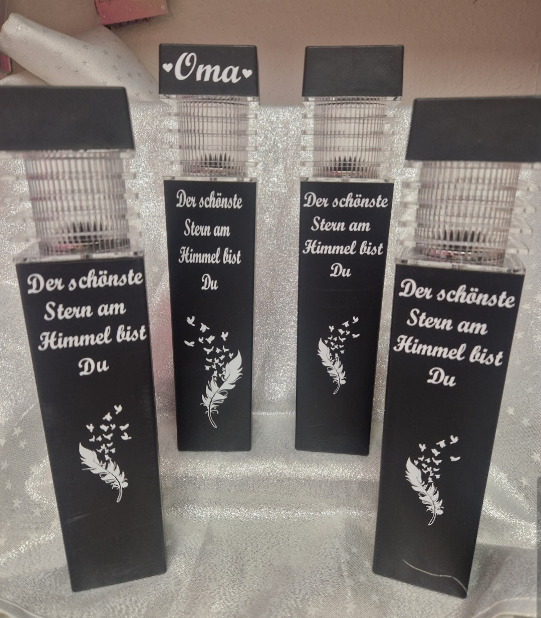 Erinnern Sie sich mit den Gedenken Solar-Lampen an Ihre Liebsten. Die wetterfesten Lampen sind in vielen Versionen erhältlich und ein echter Hingucker in Ihrem Garten oder Friedhof. Dank der Solar-Monozellen sind sie umweltfreundlich und brauchen keine Stromanschlüsse und keine direkte Sonneneinstrahlung. Schaffen Sie eine stimmungsvolle Atmosphäre und bewahren Sie die Erinnerung an Ihre Liebsten.