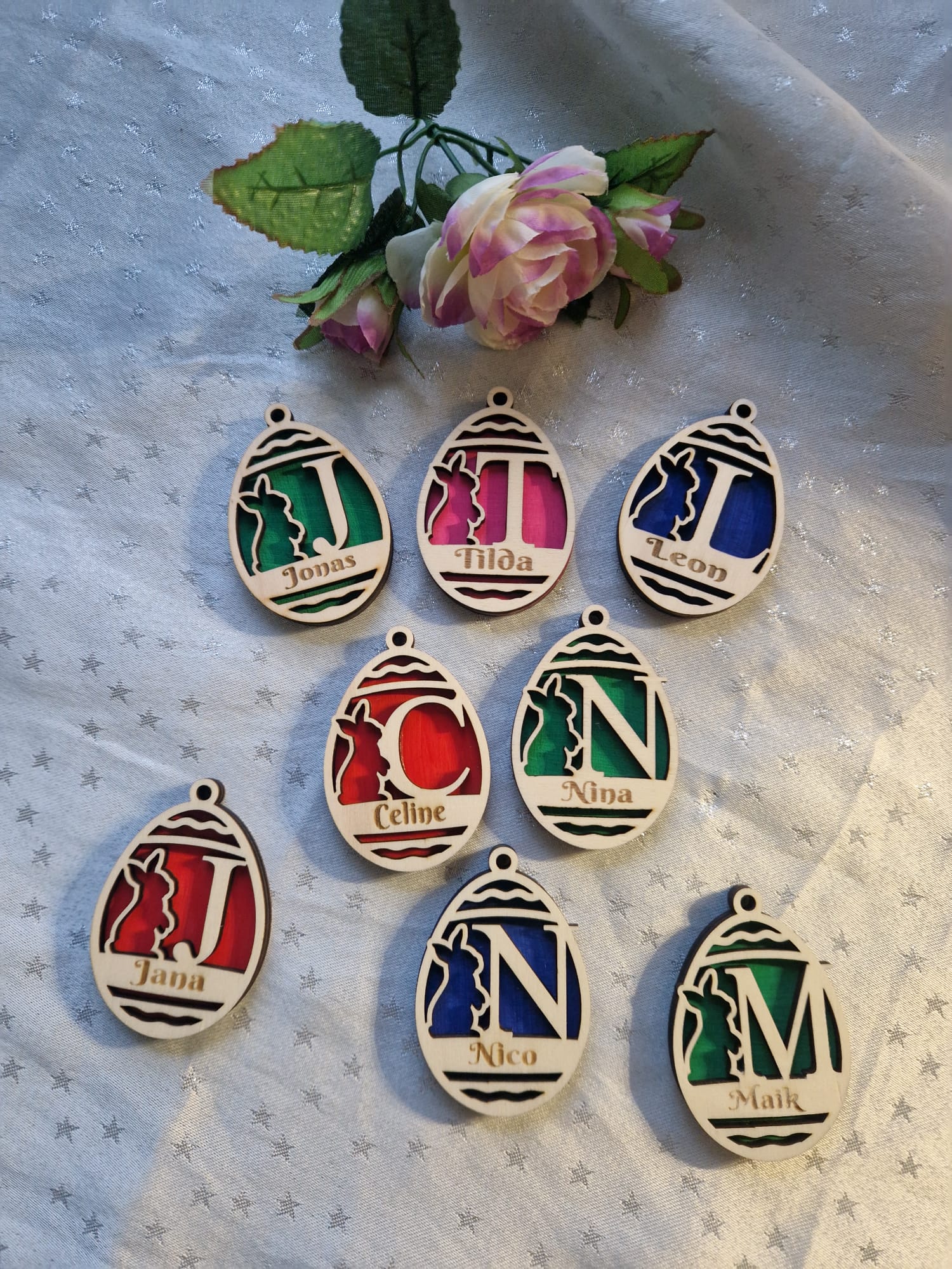 Bunte Ostereier zum Aufhängen, die Ihren Osterstrauß zum Strahlen bringen oder als charmante Dekoration überall ihren Platz finden. Jedes Ei ist in verschiedenen Farben erhältlich und lässt sich ganz nach Ihren Wünschen personalisieren – perfekt für ein individuelles Ostergeschenk oder als persönliche Note in Ihrer Frühlingsdeko. Hochwertig verarbeitet und einfach zu befestigen, verwandeln diese Schmuckstücke jeden Strauß in ein echtes Unikat.