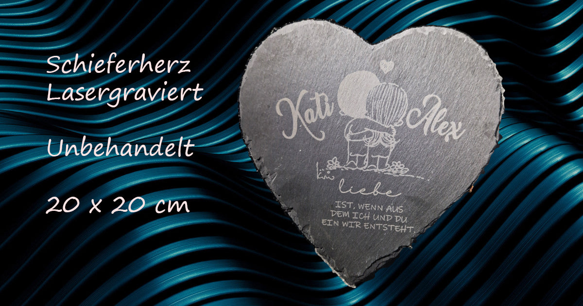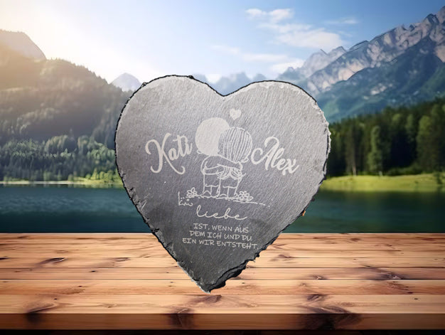 Verzaubern Sie Ihre Liebste oder Ihren Liebsten mit diesem wunderschönen, individuellen Schieferherz! Das Herz ist aus unbehandeltem Naturschiefer gefertigt und wird mit den Namen Ihrer Wahl lasergraviert. Zeigen Sie Ihre Liebe auf einzigartige Weise mit diesem personalisierbaren Schieferherz.